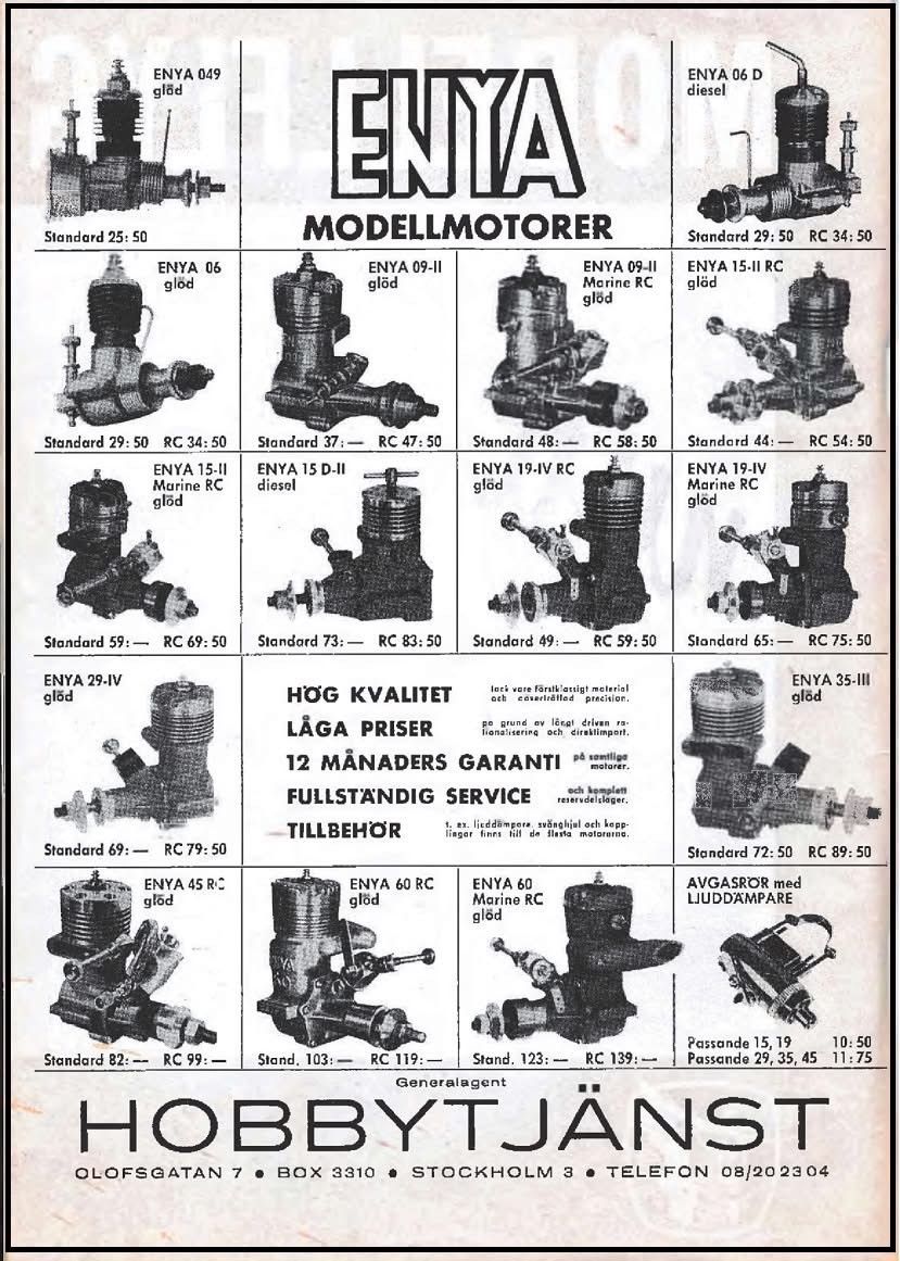 Catálogo da Enya 1965 - Revendedor Sueco